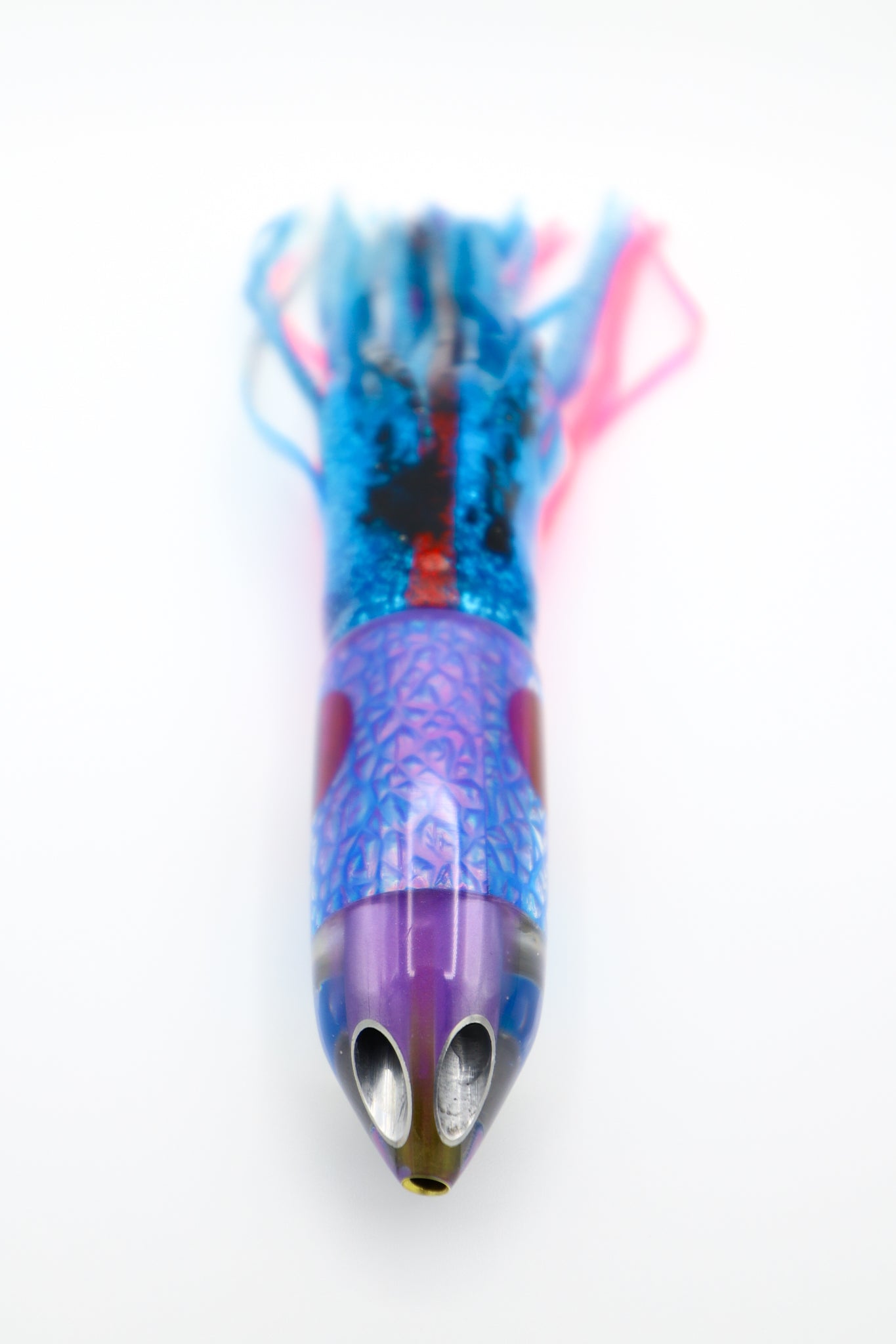 After having great success with 9" version of this head, a lot of people were asking me to make a small version. Thus the 7" was born! The double barrel jets on the top provide a great smoke trail but also help to keep the lure keel weighted which is at the utmost importance with all of my heads. The heaviness of it makes it a great lure for really rough and windy conditions and also for high speed trolling.
