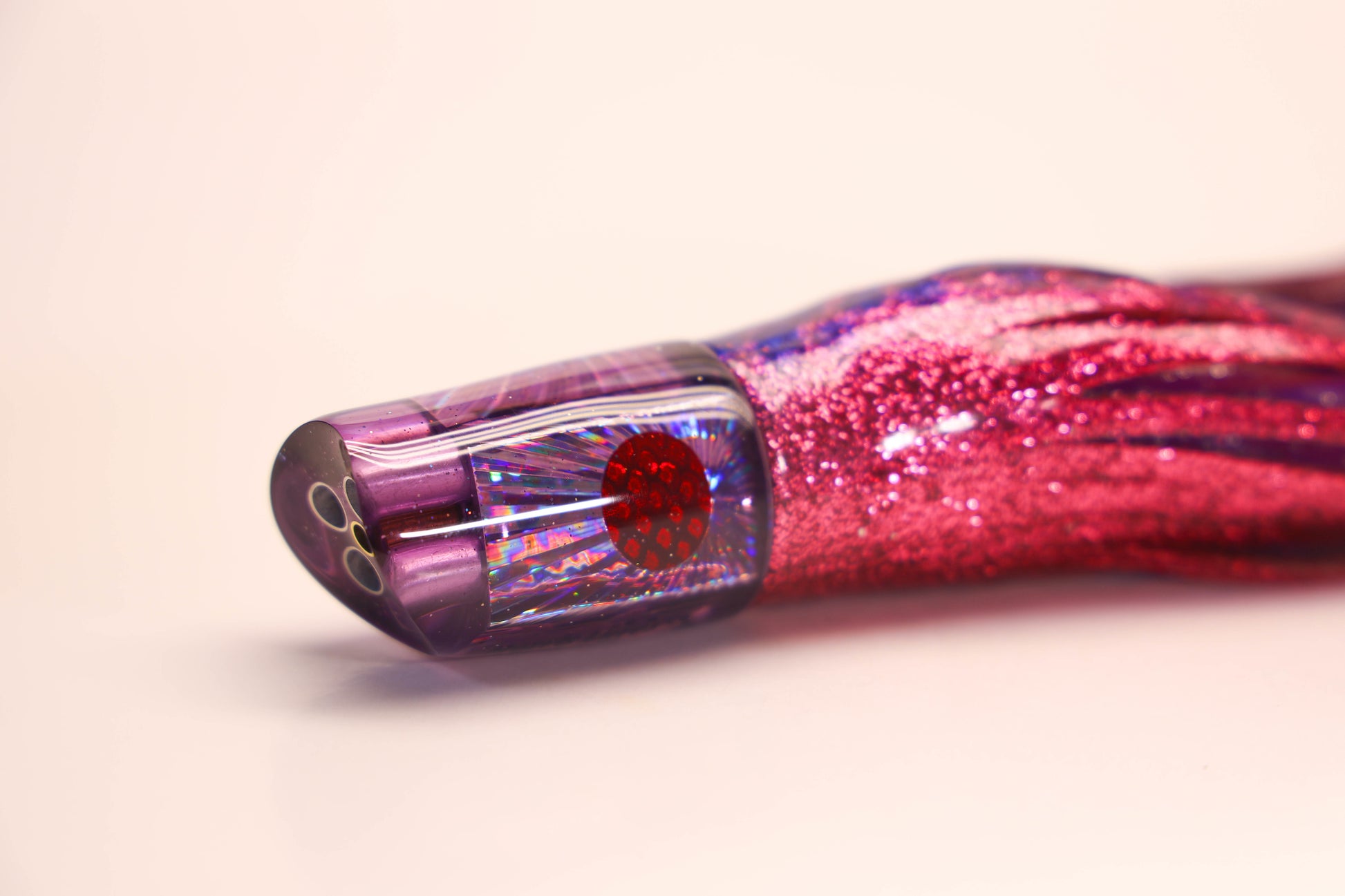 When designing this head I was almost at the point of giving up, I couldn't get it to run the way I imagined it in my head. I had the shape down but perfecting the lead insert to make run just right was a feat in itself. After about 6 months of changing leads and moving them around I would say I was finally able to get what I was after. This is truly one of my favorite shapes to run. From short too long, this is a perfect all around head. The heavy-ness of the head makes it a great popper to run in some of the roughest of conditions. The jets accent the beautiful pop and give it and unbelievable bubble trail. When running it long you can see the bubble trail coming down the face of the wave! With all my poppers I try to make a head that will pop at an interval of 1x every 6-10 seconds.