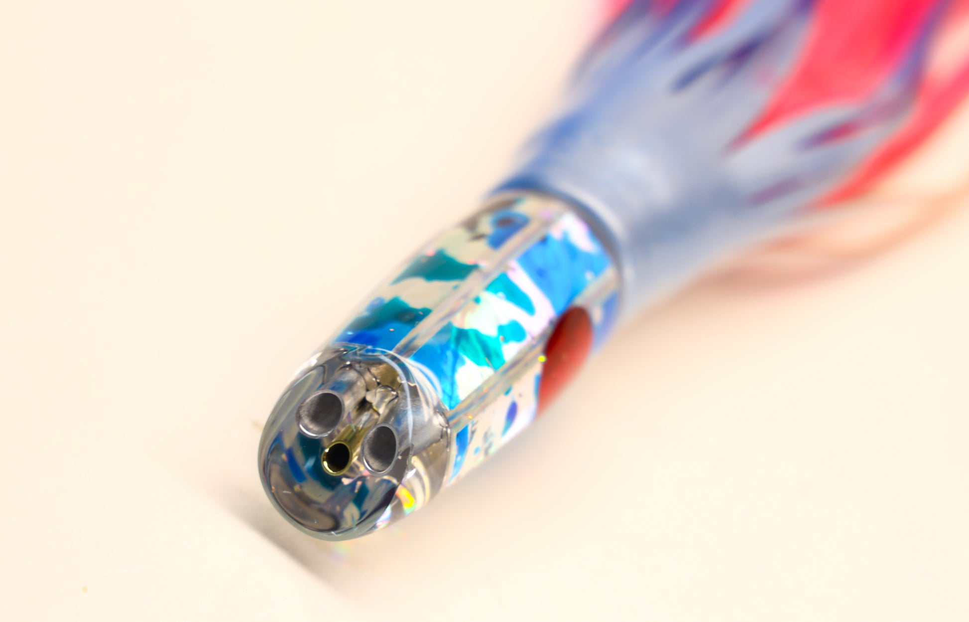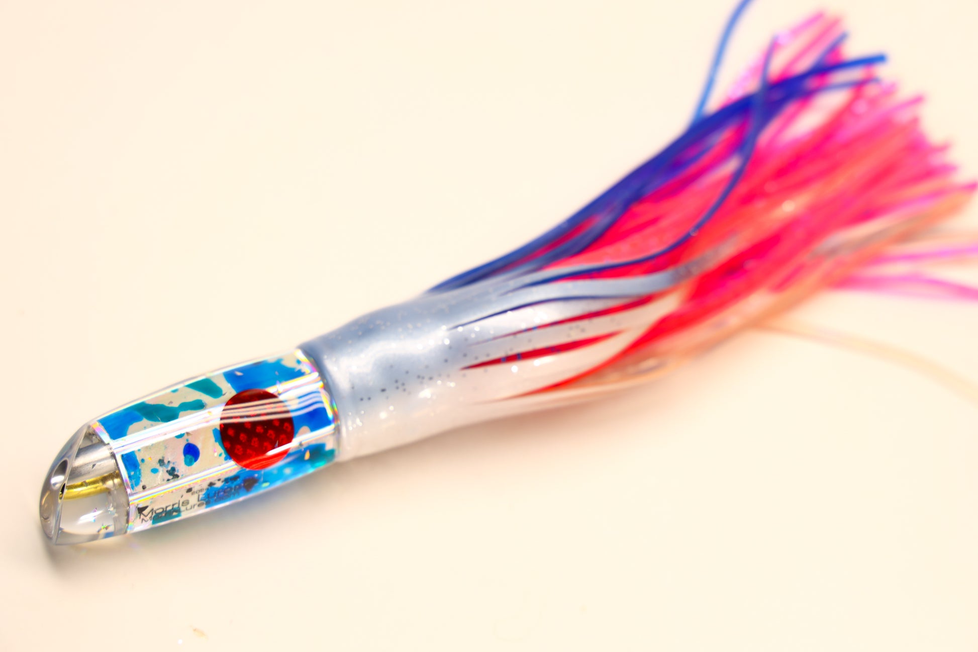 Runs deep and comes to the surface every 3-10 seconds to grab air. The further back the deeper and longer the dive. 6 sided Hexagon lead shape with a very heavy keel weight makes it run true. The scoop in front helps it to dig and stay down. Its an oversized 7" could easily be used as a 9".